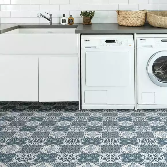 Featuring a contemporary global patchwork design in a fresh blue colourway, these Floorpops self-adhesive floor tiles are ideal for achieving a tiled finish without the need for grout or tools. These tiles are fashioned from virgin vinyl and are crafted with a permanent adhesive peel and stick backing for added durability and easy application. Ideal for kitchens, bathrooms and dining rooms, these tiles feature a water-resistant finish and can be sponge cleaned for convenient care.