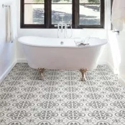 Instantly refresh your décor with these stylish self-adhesive floor tiles from Floorpops. Crafted with an elegant gothic motif in a cool grey colourway, these tiles are perfect to complement a variety of decorative styles and are fashioned with a peel and stick backing for easy application. These tiles have a water-resistant finish, making them great for use in kitchens and bathrooms, and are fashioned from virgin vinyl with permanent adhesive for added durability. Easy to sponge clean, these tiles are ideal for achieving a sophisticated tiled look without the need for tools or grout.