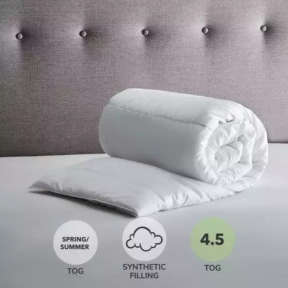 Manufactured in the UK, this 4.5 tog duvet from the experts at Fogarty is filled with hollowfibre making it light and cooling which is perfect for the warmer spring and summer months. With added softness of a microfibre cover, this cool comfort duvet has fantastic non-allergenic properties and is machine washable while available in a choice of sizes.