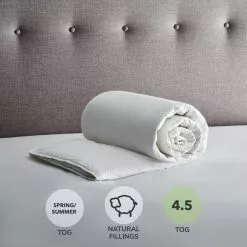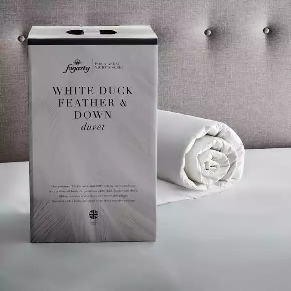 Filled with sumptuous duck feather and down for a cosy night’s sleep, this 4.5 tog duvet has been designed to keep you cool during the warmer spring and summer months. With a pure, crisp cotton cover for added comfort, this duvet from the experts at Fogarty is available in a choice of sizes and machine washable for your convenience.