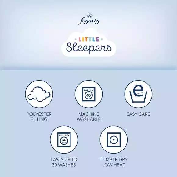 Get your little one ready for bed time with this Fogarty Little Sleepers Duvet and Pillow Set, designed in a 4 tog thickness. This duvet and pillow is easy to clean and machine washable for convenience, so you don’t have to worry about your little one making clumsy spillages or marks.