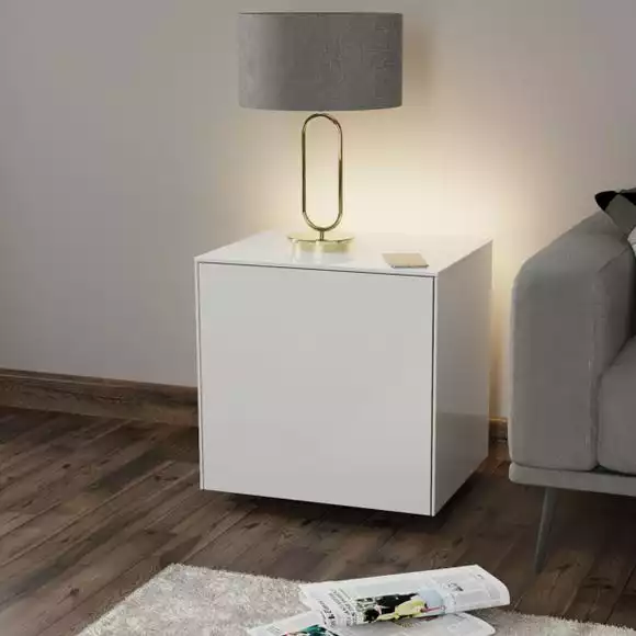 Upgrade your lamp table the smart way – this Intel LED Lamp Table is sure to wow you with its futuristic features. The full colour spectrum LED mood back lighting that can be operated by the free Frank Olsen app or voice control via Amazon Alexa, so you can change the vibe at the touch of your finger or at your order. Charge your phone without the messy wires and faff thanks to the table’s wireless phone charging compatibility, simply pop your phone on the table to charge! This contemporary table has a high gloss finish with matching glass top for easy cleaning, with an internal shelf to store all your bits and bobs.