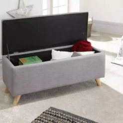 If you can’t find a place to store your shoes and other items, you’re not alone. This bench gives you storage without taking up space. The 76 litre storage compartment is perfect for shoes and the rest of your belongings. The high quality hopsack fabric looks great in any room, and the wooden feet add a touch of contrast.