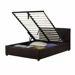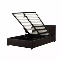 Sleep in ultimate comfort with the Toronto Leather Ottoman Bed. This fantastic bed frame is upholstered in high quality faux leather and is available in either a black finish. The robust build and central cross bar will provide optimal strength while the wooden feet and the beech sprung slats will offer additional support.
