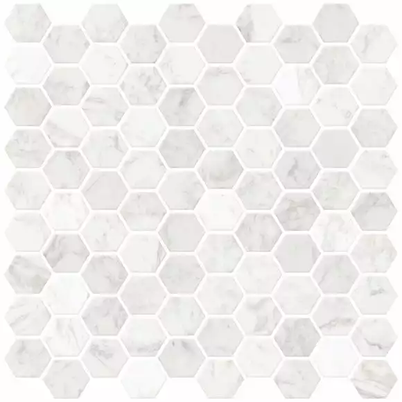 Bring the illusion of real tiles without the hassle to your home with these peel and stick backsplash tiles decorated with a stylish marble effect hexagon design. With a high shine finish making them easy to wipe clean, these tiles are perfect for use in your kitchen or bathroom. Their handy peel and stick design also means they are easy to apply – perfect for adding a personal touch the rented accommodation.
