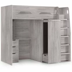 With an integrated wardrobe and desk, the Pegasus High Sleeper is the ultimate in functional bedroom furniture for kids and teenagers. The pull-out wardrobe contains a handy storage drawer which maximizes the space available within its compact build, whilst the desk includes further storage drawers and cable holes. The robust ladder contains hidden storage cupboards at every step.