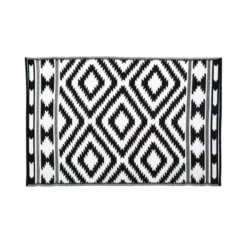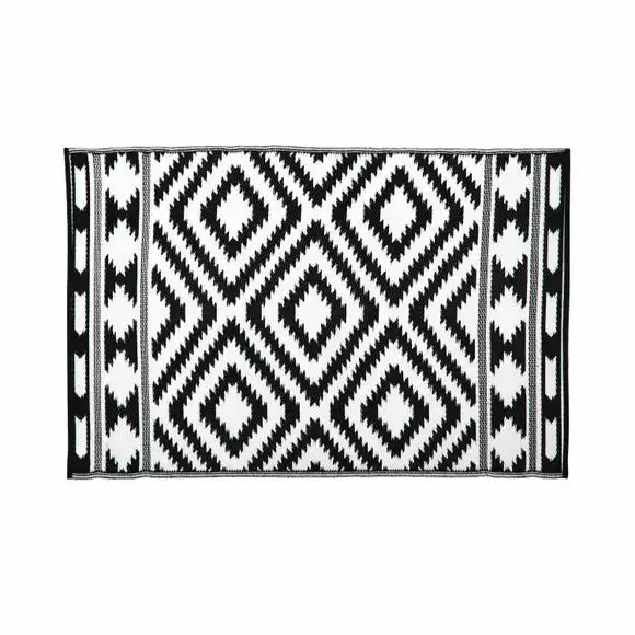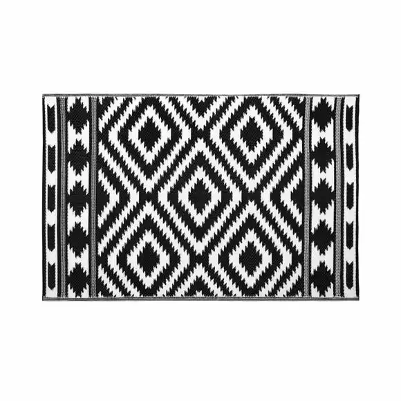 With a reversible design, your garden is about to get a lot more stylish! The aztec print in black and white creates an eye-catching design, a great addition both inside or outside the home adding practicality and style to any space. This stylish rug features a flat woven pile constructed of 100% polypropylene meaning its hard wearing and durable. Not only is this rug made to withstand rain and sun, but it is also lightweight and can be rolled up for easy storage. It would look great on your decking, patio or balcony areas. Can be used to sit on or many people opt to have the mat under the front of furniture or tables. Multi-use: the mats can be taken to the beach, park or with you on picnics, ideal for taking on holidays too; camping or caravanning.