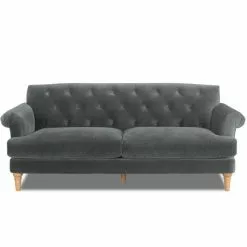 Sit back, relax, and enjoy the little things in life. The soft touch velvet upholstery, tufted diamond pattern button back and beautifully crafted scroll arms make for a premium look which translates into comfort too, thanks to a thick seat cushion (21cm) and coil spring and foam base. Framed by elegantly carved legs, this 3 seater sofa is perfect for any home