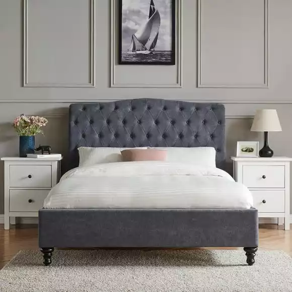 You’re worthy of a big night’s sleep. Plush velvet upholstery and a button-back design gives your room an instant shot of glamour, while the high headboard and wood legs give it an undeniably classic feel.