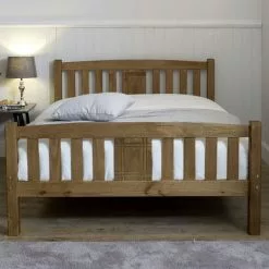 This bed frame features ornate engraving and comes in a warm golden honey finish. The Sedna Bed Frame has an engraved pattern on the headboard and footboard which enhances its simple beauty. This bed frame comes in a lovely warm shade of golden honey yellow and will suit a variety of traditional and contemporary interiors.