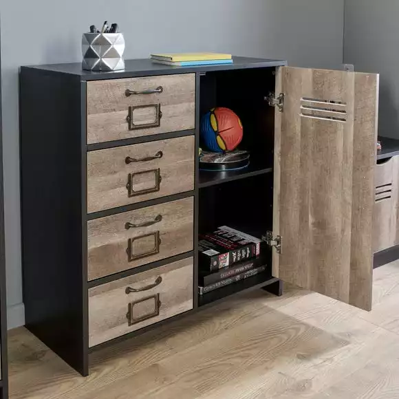 Boasting a modern design this black 4 drawer unit is ideal for storing anything your ant and its height means you can decorate the top with any ornaments and lamps making it a stylish addition to your home. This unit is easy to clean and easy to assemble.