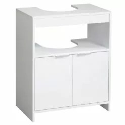 Boasting a crisp, clean satin finish, this Jaxon Under Sink Unit is ideal for keeping your bathroom neat and tidy. Made from durable MDF and with stylish chrome handles, this unit is strong, versatile, and easy to assemble. This sleek unit features ample internal and external storage space and shelves inside so you can organise all your bathroom essentials easily. This unit features a timeless white design that would compliment any bathroom interior beautifully. This item can be coordinated with other items from the Jaxon Range.