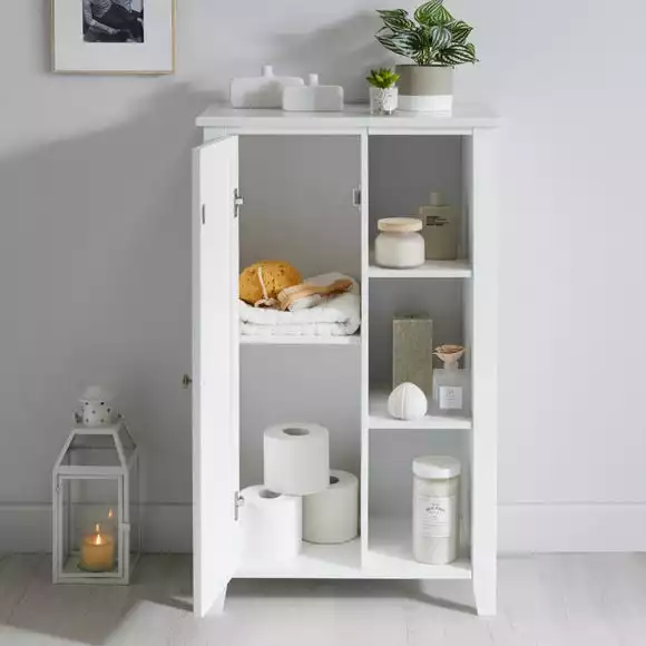 Featuring a contemporary marble effect with a chrome handle to finish, this console unit looks sleek and stylish, perfect for your bathroom space. It is easy to assemble and boasts ample storage space, with 5 shelves and 1 door, to tidy away clutter, keeping your bathroom neat. Coordinate with our other marble bathroom storage units and accessories to complete the look. This range is exclusive to Dunelm.