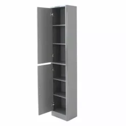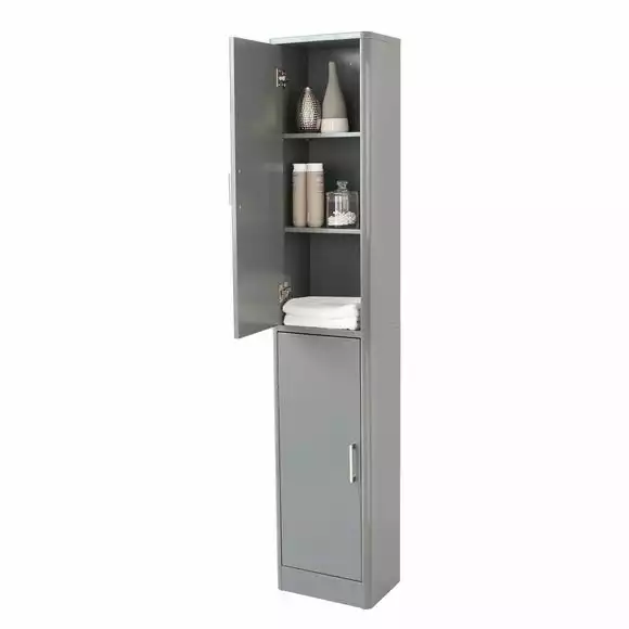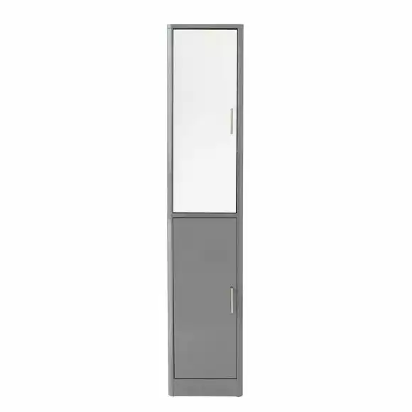 Featuring a mirrored door, modern chrome effect handle and radius edge detailing, this grey Tall Cabinet has 6 adjustable shelves, ideal for storing all of your bathroom essentials. Flat packed and easy to assemble.