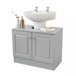 From the Verona grey bathroom collection, this under sink unit has been designed with a contemporary grey finish and features a double door opening complete with a spacious inside making it ideal for storing your bathroom essentials and cleaning products.
