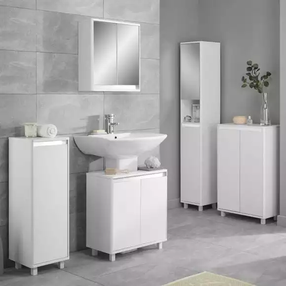 Boasting a crisp, clean satin finish, this Vienna Under Sink UNit is ideal for keeping your bathroom neat and tidy. Made from durable MDF, this unit is strong, versatile, and easy to assemble. This sleek unit features ample storage space and shelves inside so you can organise all your bathroom essentials easily. This unit features a unique reversible colour bar system that allows you to personalise the aesthetic depending on which room you’d like it to feature in or whenever you redecorate. This item can be coordinated with other items from the Vienna Range.