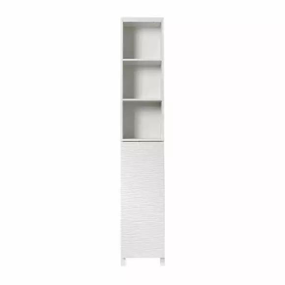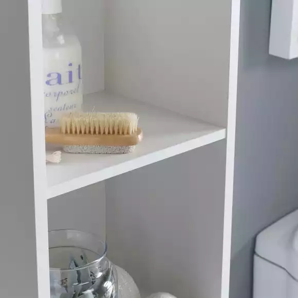 Featuring a modern, handle less design, this Tall Cabinet looks sleek and stylish, making it perfect for your bathroom space. It boasts 3 open shelves and two interior shelves, offering ample storage space for your home, meaning you can showcase your bathroom ornaments and plants whilst also internally storing all your toiletries neatly and discreetly.