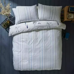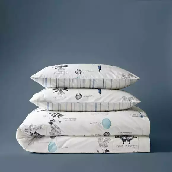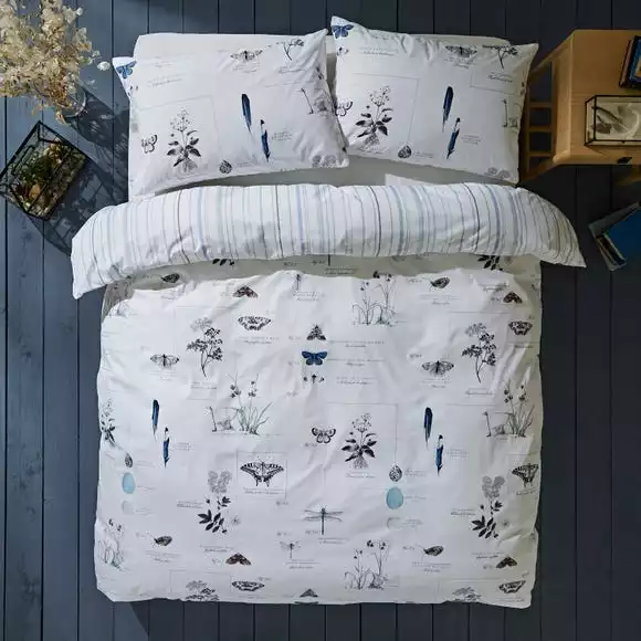 An array of plants and animal species cascade across the front of the duvet cover set, giving the look of a modern scrapbook or sketchbook that curate the waterway’s treasured finds. The reverse features a beautiful colour complementary stripe design which is perfect for a quick style change when desired. A 100% responsibly sourced cotton fabric has been used which can be fully machine washed. The duvet cover is then finished with a button fastening that keeps the cover secure during use.