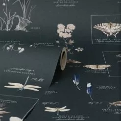 Enrich your room with this beautiful Nature’s Journey Wallpaper. A modern scrapbook design documenting an array of the waterway’s flora, fauna, eggs and feathers. Elevated by a navy backdrop, this wallpaper is perfect for a feature wall.