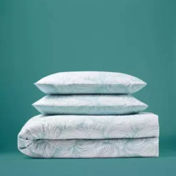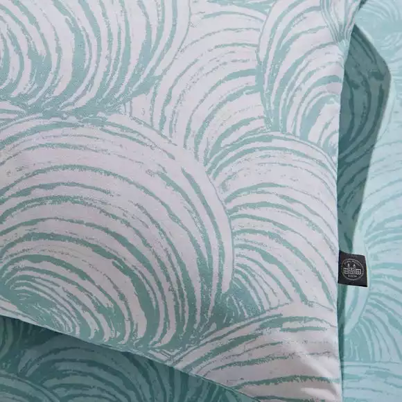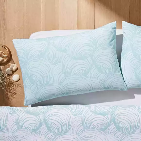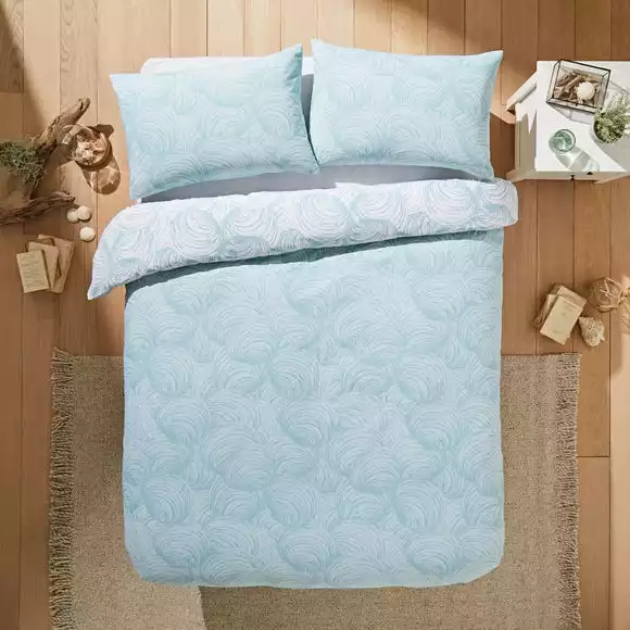 This Venus Shell printed design is part of our Natural History Museum collection. The duvet cover and pillowcase set features a tonal print of the mollusc venus casina in varying shades of seafoam. The contrasting colourway on the reverse, offers more styling options when it comes to bed making time. Made from cotton, which is naturally soft and moisture absorbing, makes this bed set the perfect choice for a restful night’s sleep.
