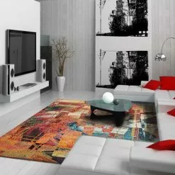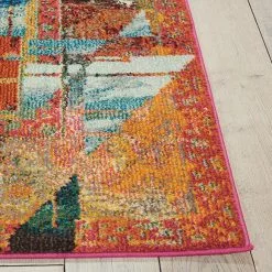The Celestial Stained Glass rug will truly light up your home. As brilliant as a backlit stained glass window, this design by Nourison emits a luminous beauty. Glittering in jewel tones of red, green, blue and gold, with a dash of black for definition and drama. Made from premium quality polypropylene yarns for superbly supple texture and years of resilient beauty, it also boasts a practical jute backing. To ensure your rug lasts, gently vacuum on a weekly basis to remove surface dust and dirt. Do not pull any loose threads, cut carefully with scissors to remove. Occasionally rotate the rug to equalise wear and avoid prolonged exposure to direct sunlight. Clean spills immediately by blotting with a clean cloth. Do not rub. If stain persists, seek professional cleaning.