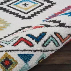 Inspired by Native American textiles, bring home a lively tribal theme with the exciting Navajo collection of rugs. Its traditional fringed trim and bright transitional hues vibrates with vivacity in this exciting multi-geometric design. Stripes filled with varying symmetrical motifs radiate out from a center medallion diamond for a striking visual effect. On receiving your rug, please unroll and leave in a warm room for 24 hours before using to reduce wrinkles and curling from packaging. Can be carefully vacuumed using a floor or brush attachment. Occasionally rotate the rug to equalise wear. Clean spills immediately by blotting with a clean, dry white cloth and do not rub. Do not pull any loose threads, please cut carefully with scissors to remove. Avoid prolonged exposure to direct sunlight.