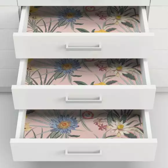 With a pink backdrop, an array of flowers cascade across this wallpaper. This stunning self adhesive wallpaper can be pulled up and removed easily. Repositionable and removable, this wallpaper leaves no sticky residue behind upon removable and can be used on a variety of surfaces