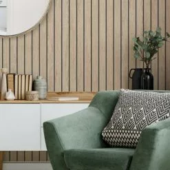 Featuring a striped design, the Nu Wall Wooden Slat wallpaper has a realistic wood design which is perfect for a creating a natural look. This stunning self adhesive wallpaper can be pulled up and removed easily. Repositionable and removable, this wallpaper leaves no sticky residue behind upon removable and can be used on a variety of surfaces