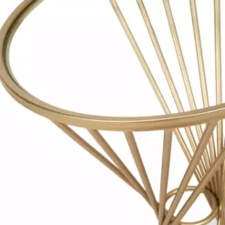 A stylish addition to your living room, pop this table next to your favourite spot on the sofa to keep your cuppa close by. The Liberty side table is designed with an Art Deco style, it is characterized by its ornate design that features geometric shapes and bold lines. Made with a gold leaf framework gives the table a luxurious and opulent feel, while the glass top provides it with a sleek and modern look. The sturdy structure ensures its durability and longevity, able to withstand daily use.