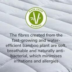 Expertly crafted from a luxurious blend of bamboo rayon and cotton, this mattress protector from Panda is environmentally friendly, durable and dust mite resistant. Both materials are naturally sumptuously soft and help to promote restful sleep by maintaining a comfortable body temperature through the night. A thin, light and durable waterproof layer made using the latest Nano TPU technology ensures that your mattress is seamlessly protected from accidental spills and acts as a shield against moisture, bacteria and fungi. With anti-allergy properties, this mattress protector is suitable even for those with the most sensitive skin and may be machine washed for your convenience.