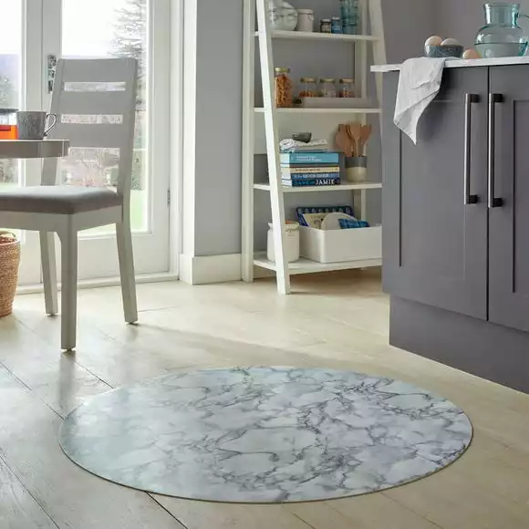 Get the marble effect look with the Marble Vinyl Mat for adding a touch of glam style to your floors. The 100% vinyl composition makes the Marble Vinyl Mat perfect for on-the-go homes. The low-profile design is hard-wearing, the ideal choice for adding some comfort to high-traffic zones. Wipe-clean and moppable, the Marble Vinyl Mat is pet and child friendly. We love using in kitchens, hallways and bathrooms to add a cushioned element to hard floors and some luxe style to your busy spaces.