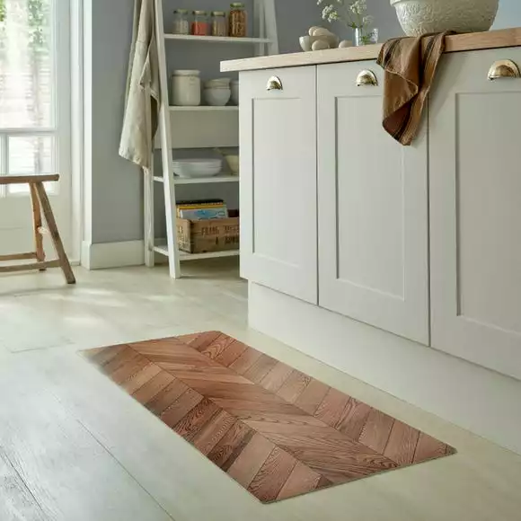 Inspired by traditional parquet flooring the Parquet Vinyl Mat adds a timeless look to your space. The 100% vinyl composition makes the Parquet Vinyl Mat perfect for on-the-go homes. The low-profile design is hard-wearing, the ideal choice for adding some comfort to high-traffic zones. Wipe-clean and moppable, the Parquet Vinyl Mat is pet and child friendly. We love using in kitchens, hallways and bathrooms to add a cushioned element to hard floors and some traditional style to your busy spaces.