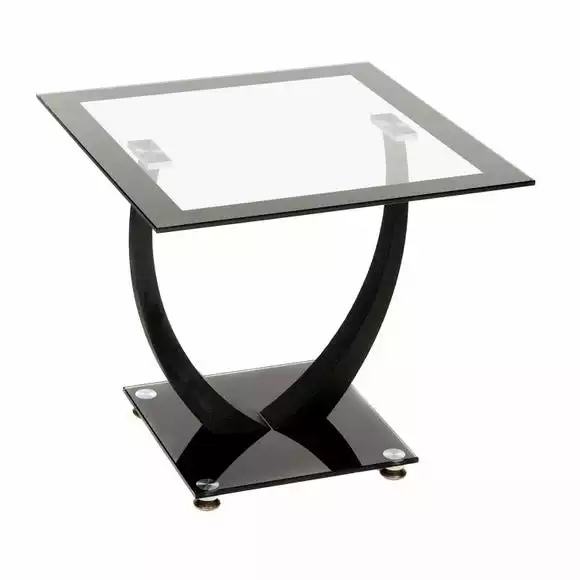 The Henley Lamp Table is sure to catch the eye in your home with its modern design and unique U-shaped frame. The clear tempered glass has a black glossy finish around the edges for that modern look while the U-shaped frame is supported on a sturdy stand.
