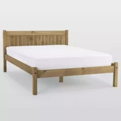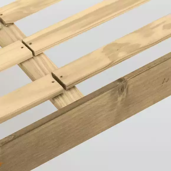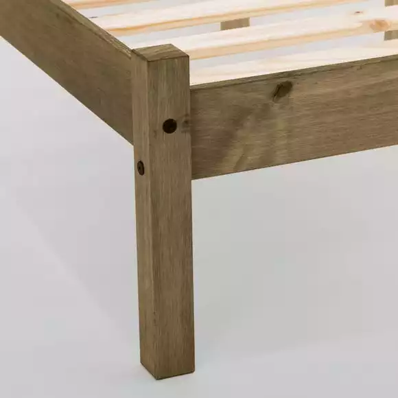 Suitable for a range of bedroom decor, this self-assembly bedstead features a striking contemporary design with a distressed waxed pine finish. Crafted from solid pine for durability, this bedstead is designed with solid slats to ensure an even surface and ventilation for your mattress.