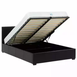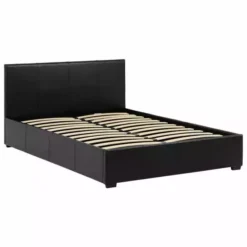 A faux Black leather storage bed frame with an ottoman lift slatted base. Combining practicality and minimal design, the Waverley Faux Leather Storage Bed Frame will provide you with a large amount of bedroom storage space whilst also offering a comfortable and supportive sleeping environment. The sprung slatted base integrated into the bed’s design offers a more natural platform to sleep on and opens up to an easy access storage area to give you a great place to keep your bedroom essentials. What is more, the large headboard gives you a brilliant means of resting in the comfort of your own bed when not sleeping.