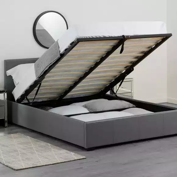 Offering a practical modern design, the Waverley bedstead features a handy gas-lift ottoman mechanism that easily lifts to reveal ample storage space beneath. This handy, self-assembly storage bed is upholstered in a grey PU leather that would complement any décor style and comes complete with foam padding and sprung slats to provide added comfort and support.