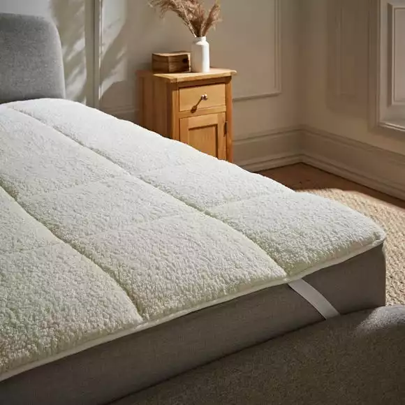 Ideal for keeping you cosy during the colder months, this cream mattress topper features a super soft Teddy Bear fleece face for added warmth in winter and a microfibre reverse to keep your bed cool in summer. This mattress topper is crafted with polyester filling for added comfort and is machine washable for easy care. Fashioned with elasticated corner straps for a snug fit, this mattress topper is available in a variety of sizes to suit your requirements.